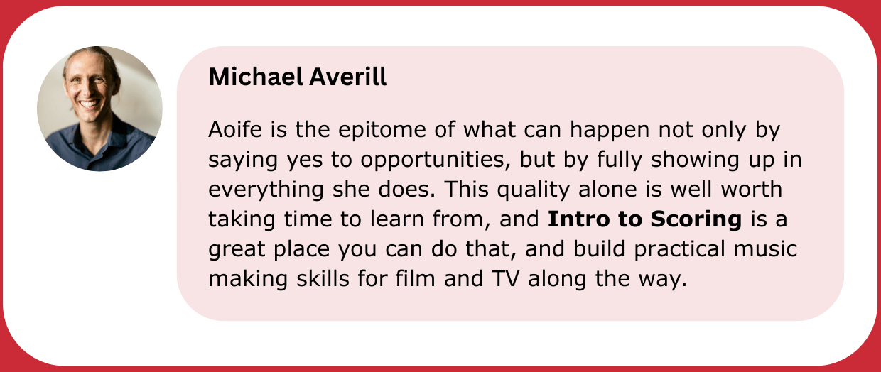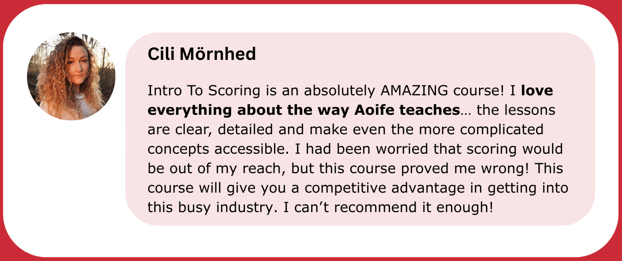Intro To Scoring has been an unexpected blessing on Aoife's journey, and with Intro to Scoring LIVE, she aims to guide fellow composers through the Intro To Scoring course - and the scoring process in general - in a way that is as jargon-free and as fun as possible!