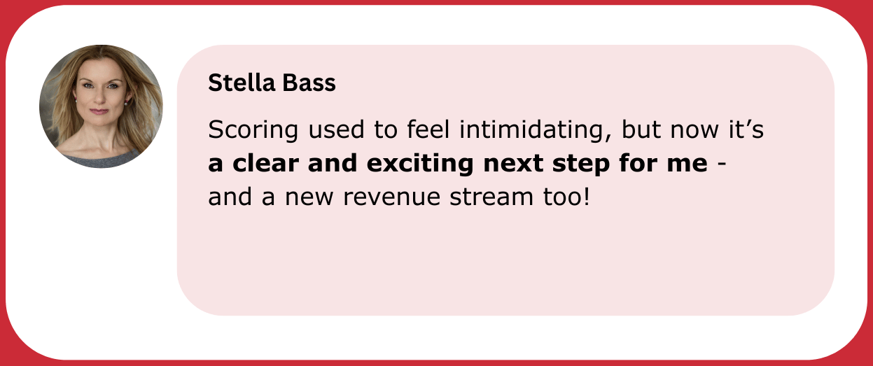 Get ready to be guided through the Intro to Scoring course, with weekly live Q&A/coaching calls and accountability. Develop your confidence and self-belief and get ready for your first scoring job—and all for an unbelievably low price!