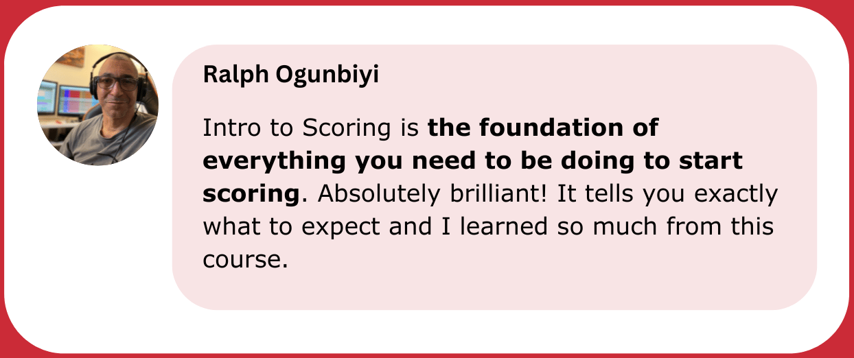 ✅ Get really familiar and comfortable with the process of scoring music for films, TV and other media so that you build your confidence and feel ready to be hired for scoring jobs.